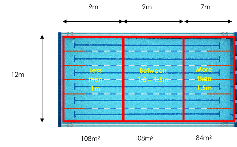 Divide the pool up into zones according to the depths given below: